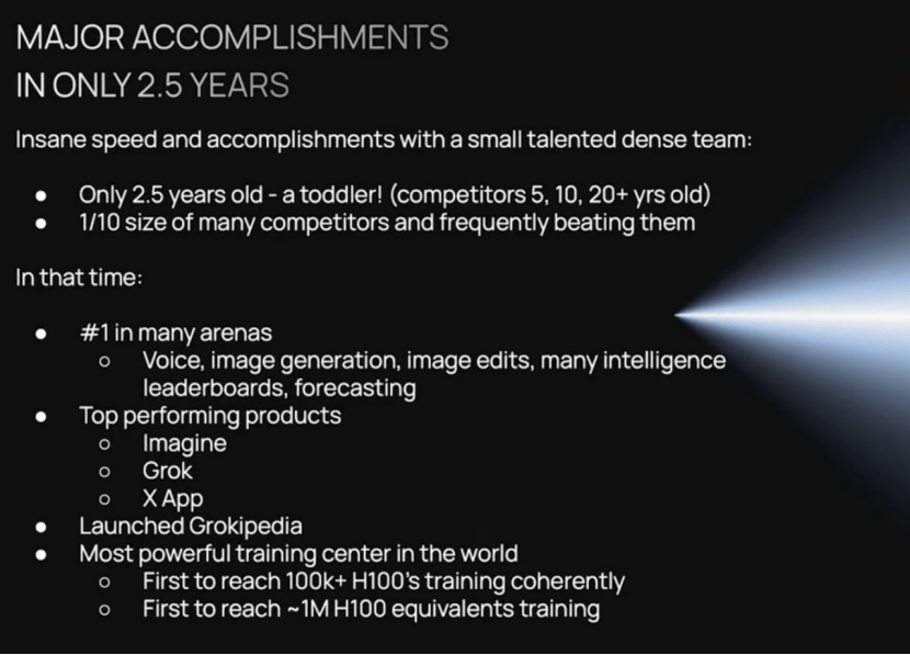 他先讥讽xAI只要两年半,“还只是个学步的孩子”,随后一页页翻出公司成就单:语音、图像、视频生成登顶榜单,10万张H100锻炼集群曾经建成,百万卡规模正在上,Grok使用、Imagine、多模态产物线全面铺开。特别是正在两位华人结合创始人方才分开、遍及解读为“动荡期”的布景下,这场全员会的信号很是明白:xAI只是正在变化,不是正在被丢弃。更大的野心也被披露,不只X要往“超等使用”的标的目的成长,还要阐扬SpaceX和xAI归并的能力,健忘火星,剑指月球,建登时外算力设备。吴宇怀(Tony Wu)和Jimmy Ba先后正在X上策动静,暗示将从xAI去职。一时间猜测的声音四起,特别考虑到机会微妙——马斯克正正在动手融合SpacaX取xAI两家公司,并可能预备上市。据统计,光是xAI的12位结合创始人中,就曾经走了6人。如果再加上其他近几个月去职的工程师,从xAI弃船的人和下饺子没两样了。“xAI几天前进行了沉组,以提高施行速度。跟着公司的成长,特别是像xAI如许快速增加的公司,其组织布局也必需像任何生物体一样不竭演进。