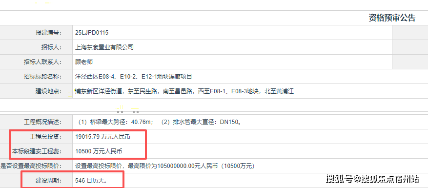 不久前,上海市扶植市场消息办事平台已发布“洋泾西区E08-4、E10-2、E12-1地块连廊项目”资历通知布告,显示项目已进入工程实施前的招采推进阶段。
