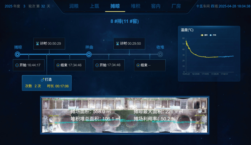 茅台正在高温高湿的复杂车间里,初创了“视觉+传感+3D”多模态数据采集手艺,通过正在车间里摆设上百个摄像头和传感器,系统能从动化及时采集酿酒师傅们的润粮次数、上甑布料次数、摊晾面积、窖内温度等34项焦点目标——近3年累计采集了超4500万条高质量数据,形成了工艺解析的“数据基石”。